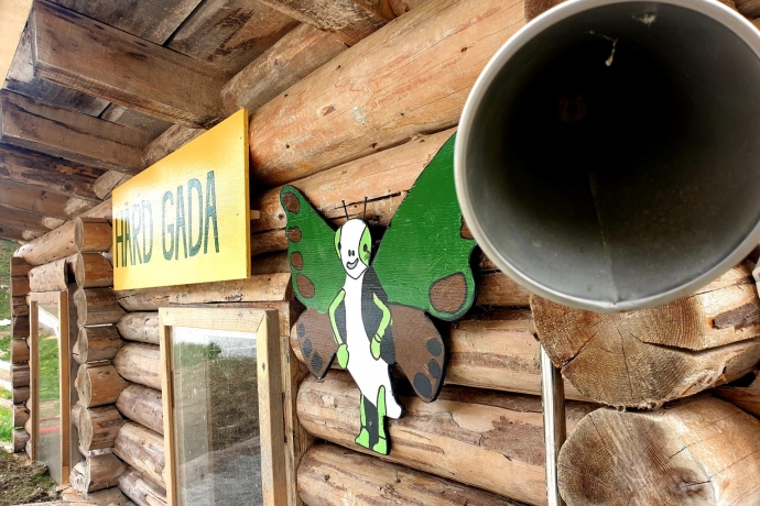 Die vier Gada (umgebaute Kehrichthüsli der Gemeinde Safiental) widmen sich einem Thema und animieren zum Entdecken. Der vom Wind verwehte Gada steht schräg in der Landschaft und ist mit diversen Windspielen versehen. Beim Wasser Gada sorgt ein vielseitiges Wasserspiel für Spass und durch den innen völlig gelben Sonna Gada kann in einen Sonnenkobel geklettert werden. Im Härd Gada können die Kinder wie in einem Murmeltierbau durch die Gänge schleichen, „sändele“ und mittels einem Rohrtelefon mit den Eltern draussen kommunizieren. Auch klassische Bestandteile wie Schaukel, Doppelrutschbahn und Kletterelemente fehlen nicht. Sie werden aber durch lustige Neuerfindungen, wie eine Tannenzapfen-Werfanlage, ergänzt.